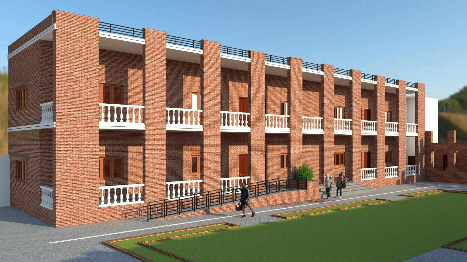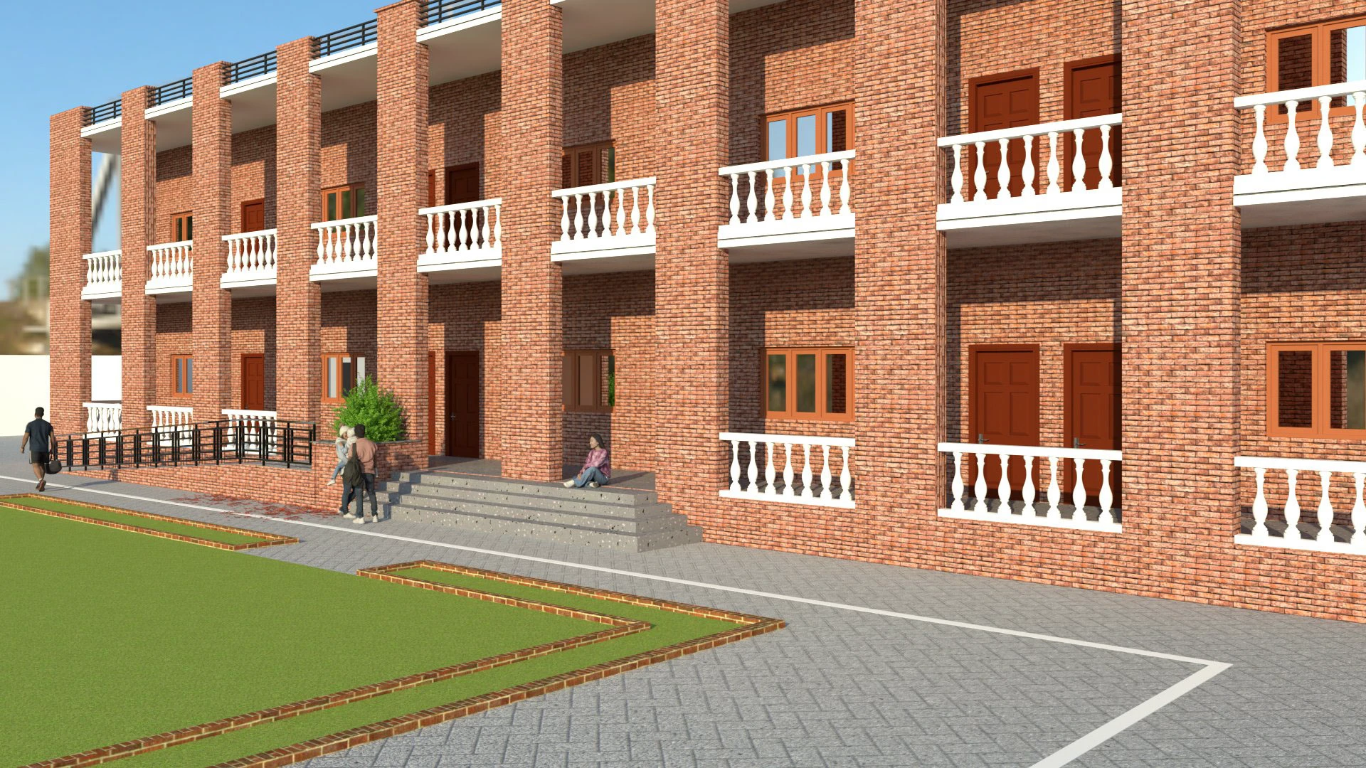 This redevelopment project strategically replaces aging structures with a modern G+1 academic block. The masterplan restructures the 0.530-acre site around a central courtyard to establish a clear spatial hierarchy.