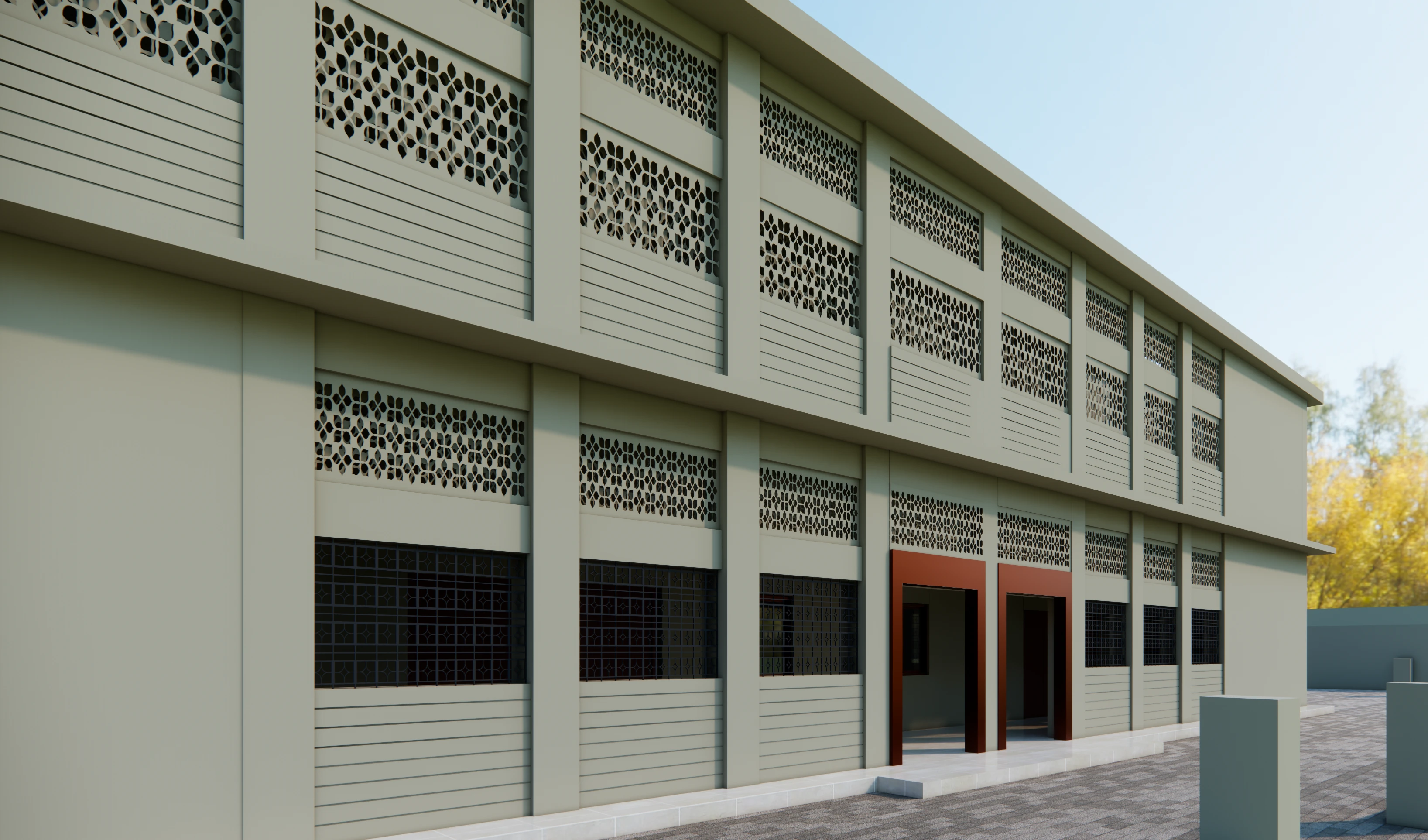 This G+1 renovation expands student capacity while maintaining regional character. The design modernizes the campus with a focus on cost-effective construction and heritage preservation.