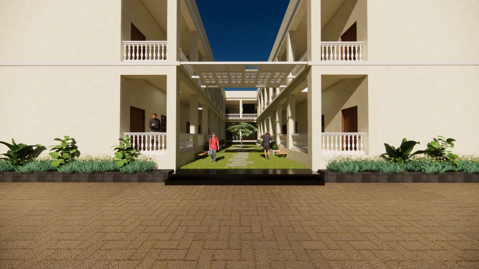 Open courtyards, shaded verandahs, and 16-inch cavity walls ensure natural ventilation and thermal comfort during peak summer conditions. The design balances durability with sustainability, providing a high-performance learning environment tailored to the local climate.