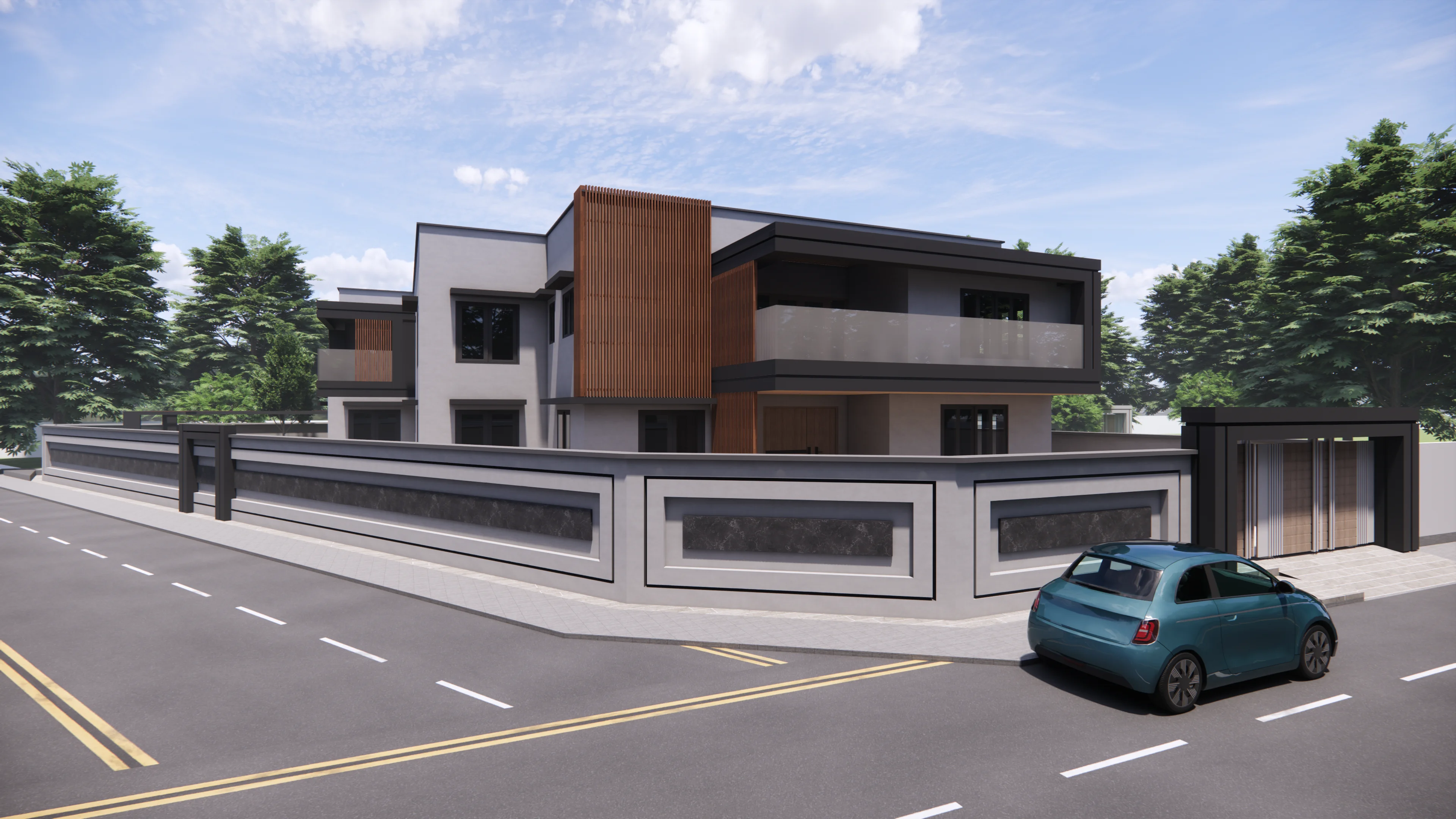 • Strategic volumetric shifts ensure the large-scale residence maintains a balanced, non-monolithic appearance.
