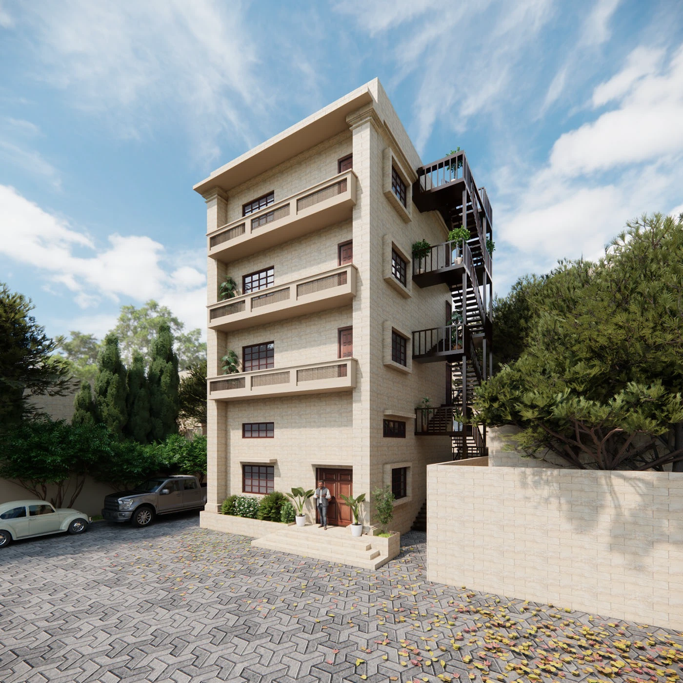 • Inclusion of horizontal balcony bands and traditional balustrades to add architectural depth.